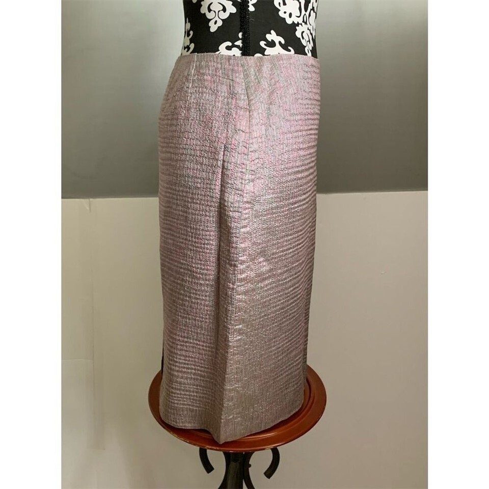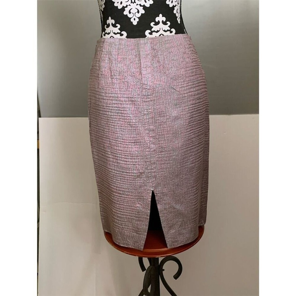 Keywords: Dana Buchman, knee-length skirt, formal skirt, silk blend, wool blend, pencil skirt, multicolor skirt, women's fashion, elegant skirt, lined skirt, business attire, formal wear, pre-owned skirt.