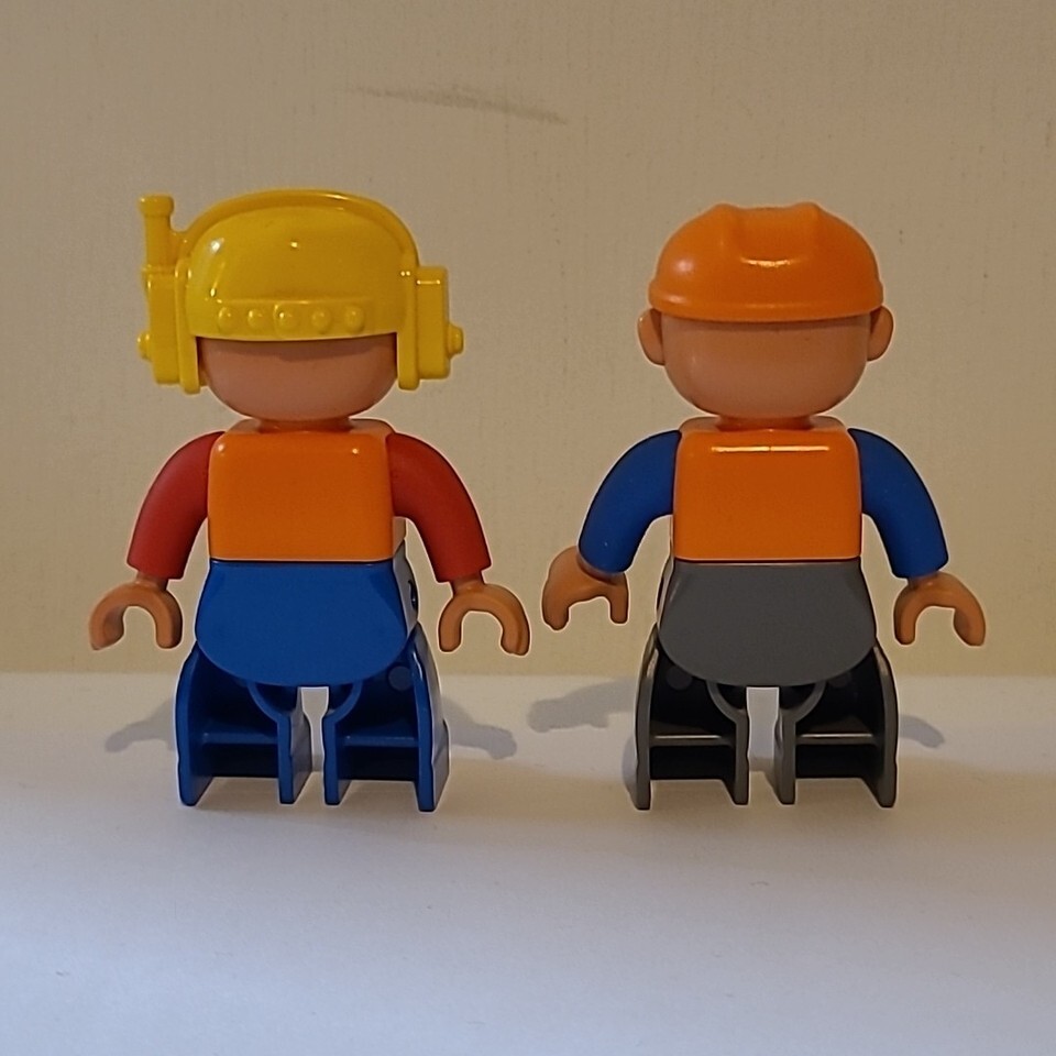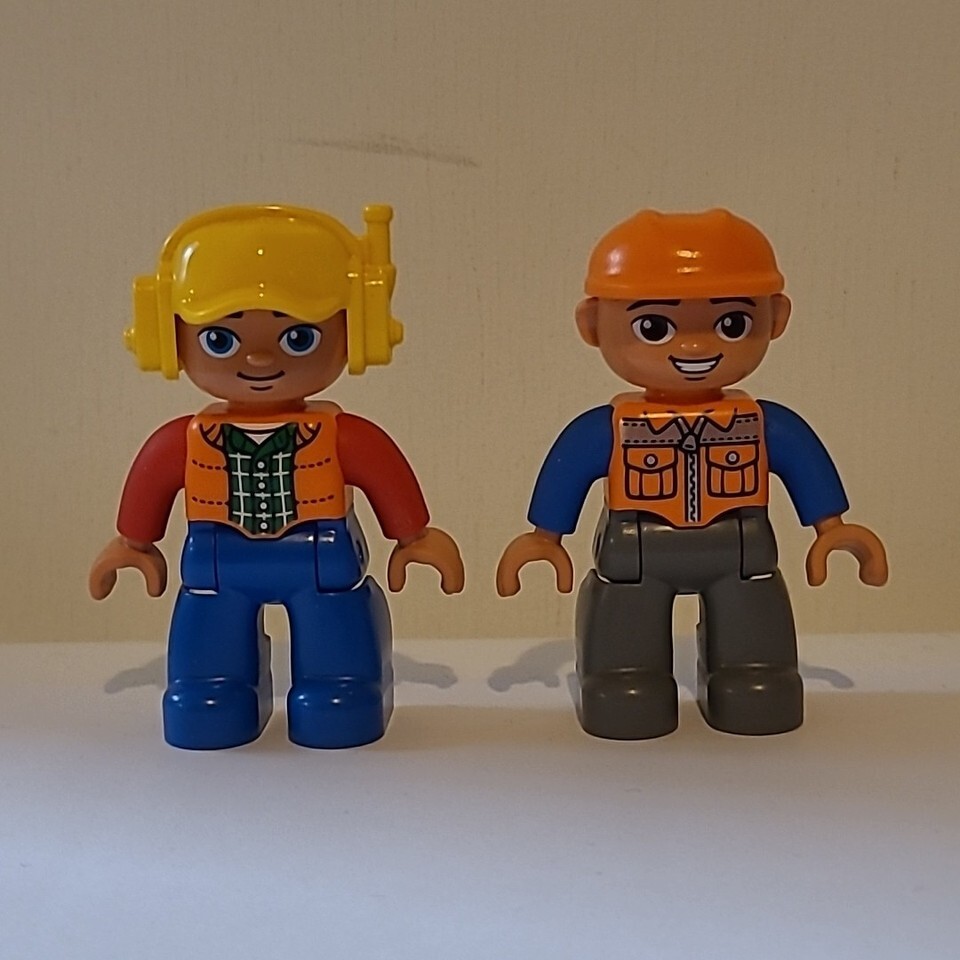 Primary image for VTG Retro Lego Duplo Construction Worker Figures Yellow And Orange Hats Playset