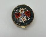 VTNG Micro Mosaic Flower Gold Tone Oval Snuff Pill Box Red Blue White Flowers