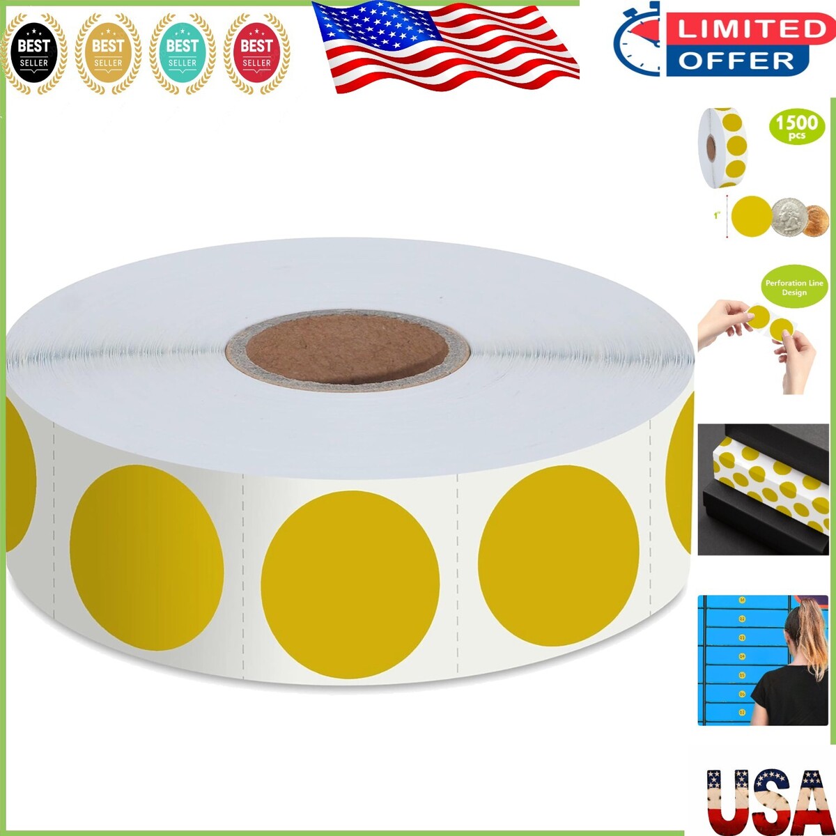 Elevate your organization game with our exquisite mega bundle of 1500 self-adhesive gold circle dots, perfectly designed for inventory management and more!