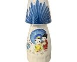 This vintage porcelain sake bottle by TTC China features a delightful design of Japanese children in traditional kimonos playing with a parasol and toys. Made in Taiwan (R.O.C.) and dating to the 1970s?early 1980s, it reflects the export style of the era. The bottle is paired with a likely-melamine cup featuring a blue chrysanthemum-style pattern. The cup may not be original to the set but complements the design nicely.