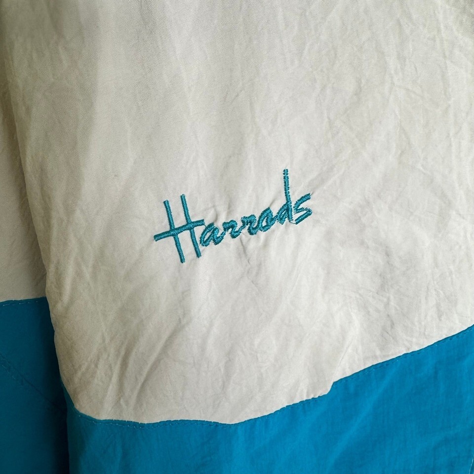 Keywords: Harrods jacket, vintage track jacket, retro jacket, white and blue jacket, men's jacket, lightweight jacket, full zip jacket, athletic jacket, Harrods, tennis jacket, track jacket, vintage clothing