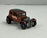 Vintage Hot Wheels Classic 32 Ford Vicky Redline Diecast Car 1970 Mattel USA #6 Condition: Good vintage condition with moderate paint wear, edge/surface chips, and visible wear on decals and grill (see photos for close-ups of flaws). Wheels and axles show typical age-related wear, but car rolls smoothly. Features original metallic brown/copper paint with black roof panel Redline wheels with all axles intact and rolling well Side Hot Wheels logo and number 6 racing circle decals present on both sides Detailed exposed engine and classic hot rod styling Interior: Cream/off-white seats visible through windows Base reads: HOT WHEELS CLASSIC 32 FORD VICKY, 1969 MATTEL INC. U.S.A., U.S. FOREIGN PAT. PEND. Item is authentic, made in the USA by Mattel circa 1970 Perfect piece for collectors of Hot Wheels Redline era cars