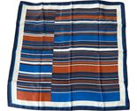 Vintage Intertex Japan Striped Scarf ? Blue, Rust White Geometric Square ? 26? Silken Polyester