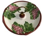 Beautiful vintage Maddux of California handled ceramic dish featuring a raised grapevine motif with purple grapes and green leaves on a cream background. The dish has a scalloped rim trimmed in wine red and a central brass handle for easy carrying. Marked ?Maddux of Calif. USA 3107-M? on the underside. Perfect as a candy dish, trinket holder, or decorative accent.