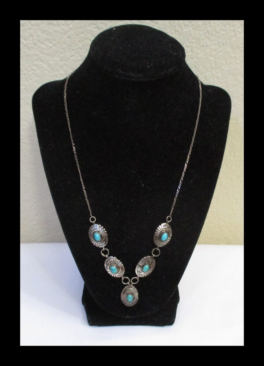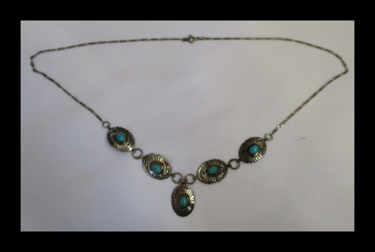 Vintage Native American .925 Sterling Turquoise Necklace Signed LMY, Larry Moses Yazzle 22", Ships in gift box. Same or next day ship.