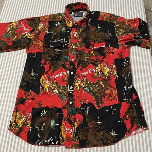 Vintage Panhandle Slim Cowboys and Indians Shirt Long Sleeve 17x35 48? chest.