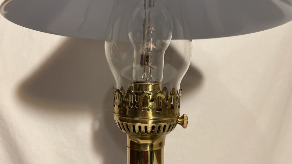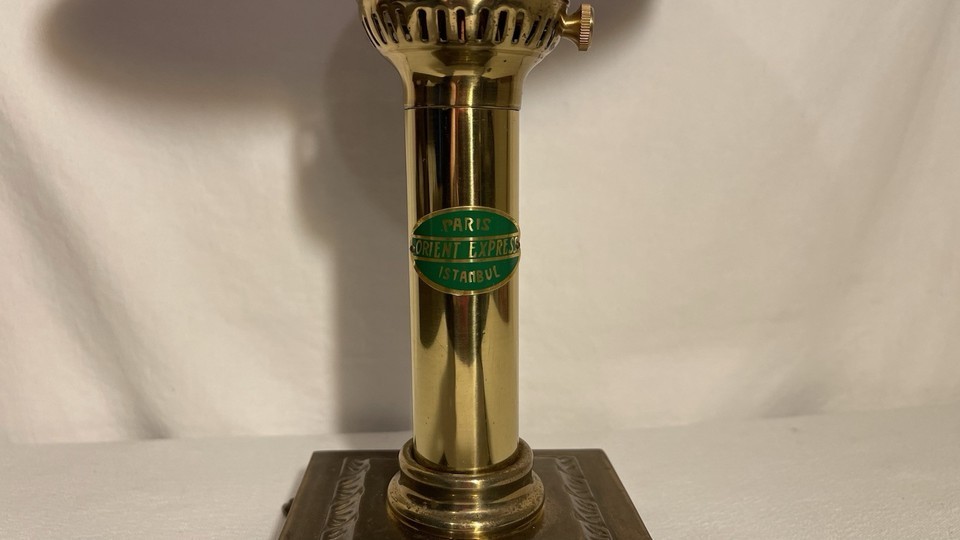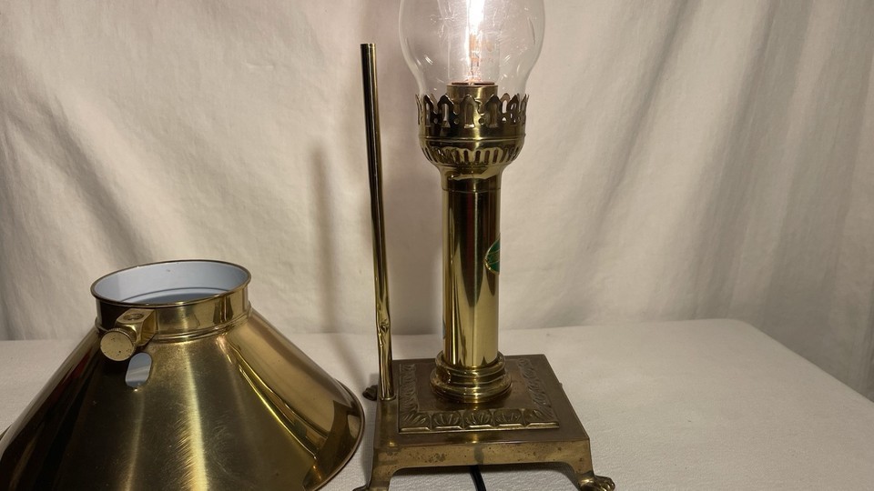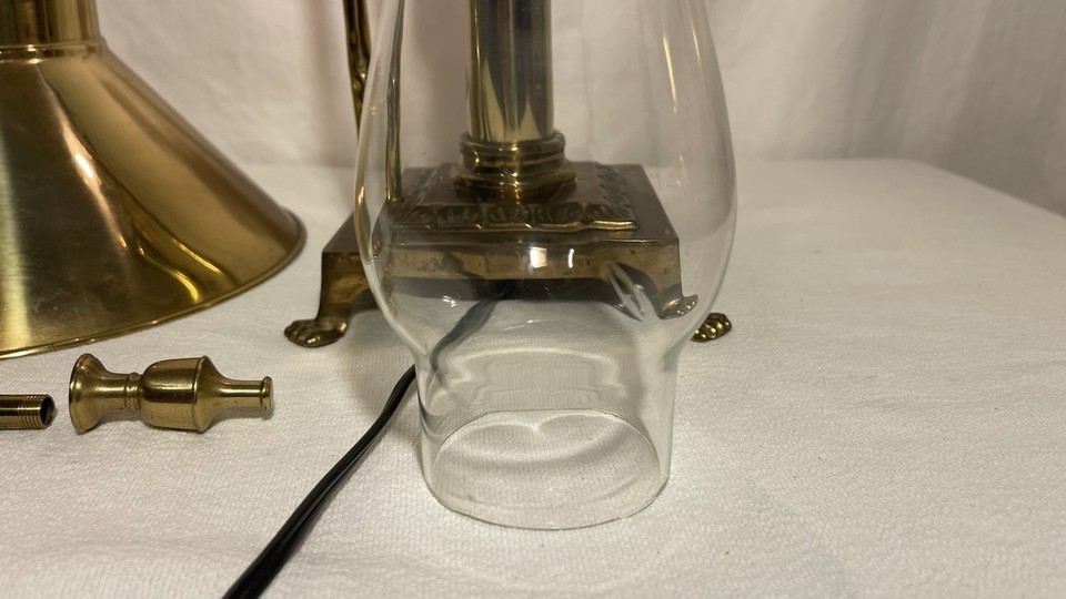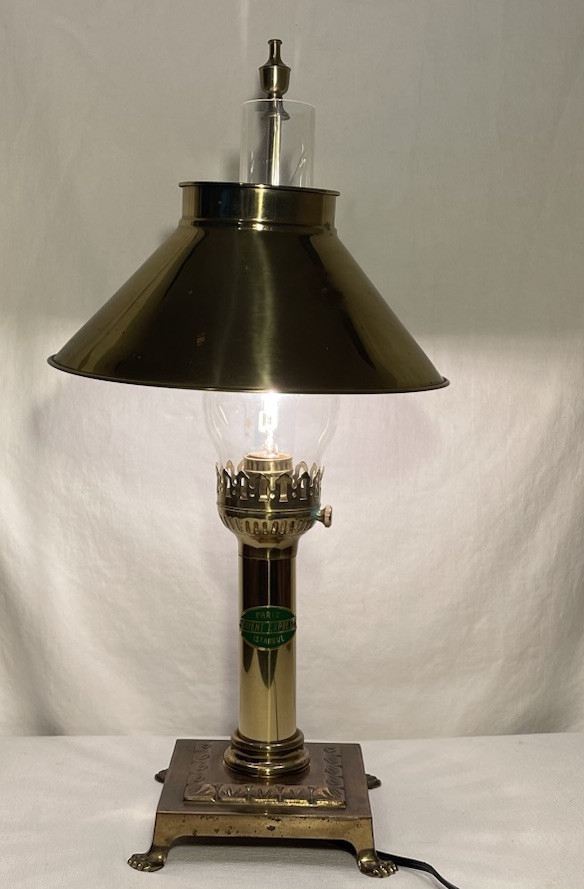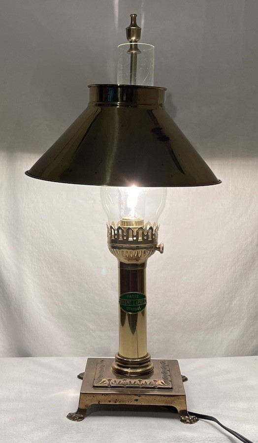 Vintage Paris Istanbul Orient Express Brass Clawfoot Adjustable Table Lamp