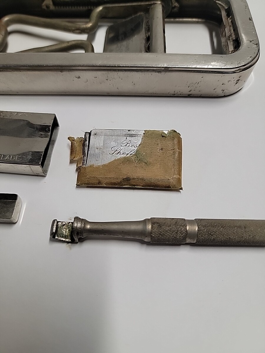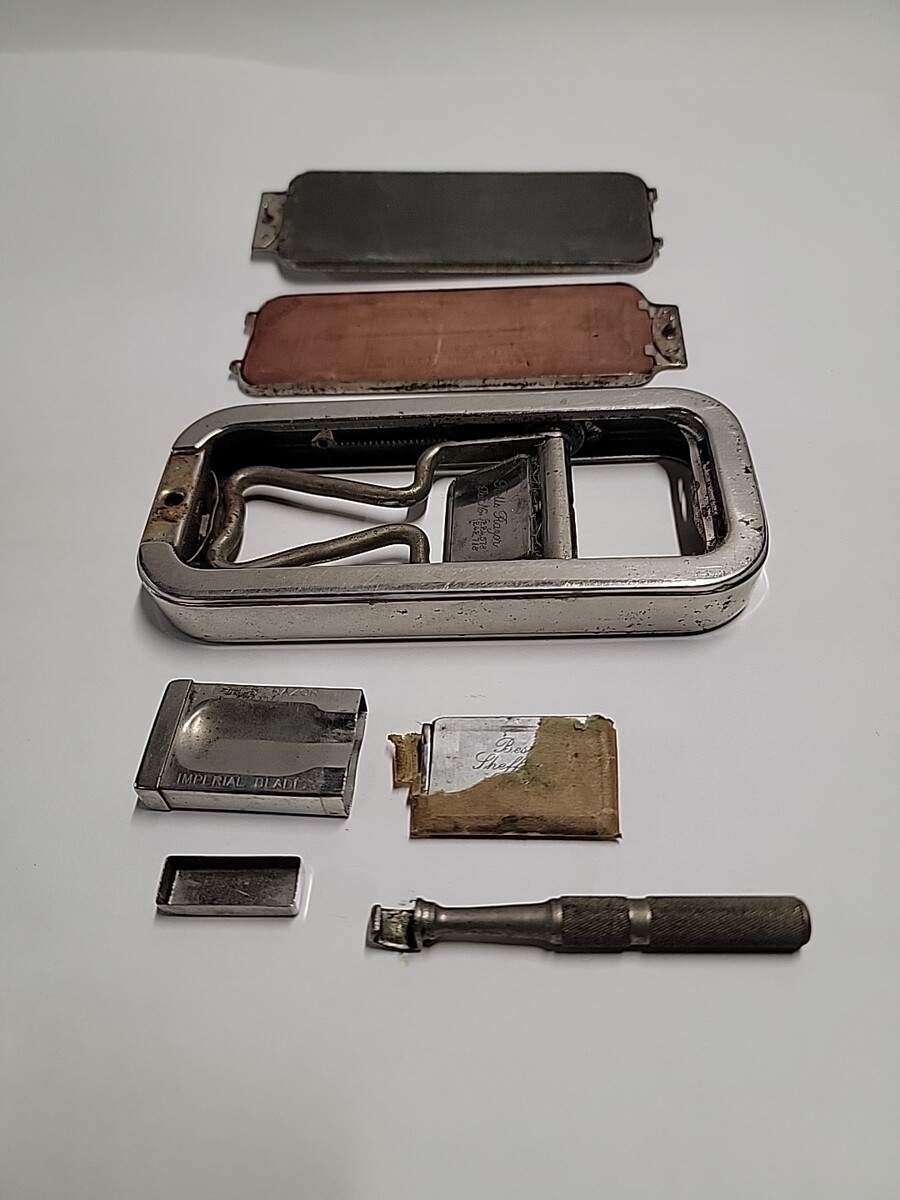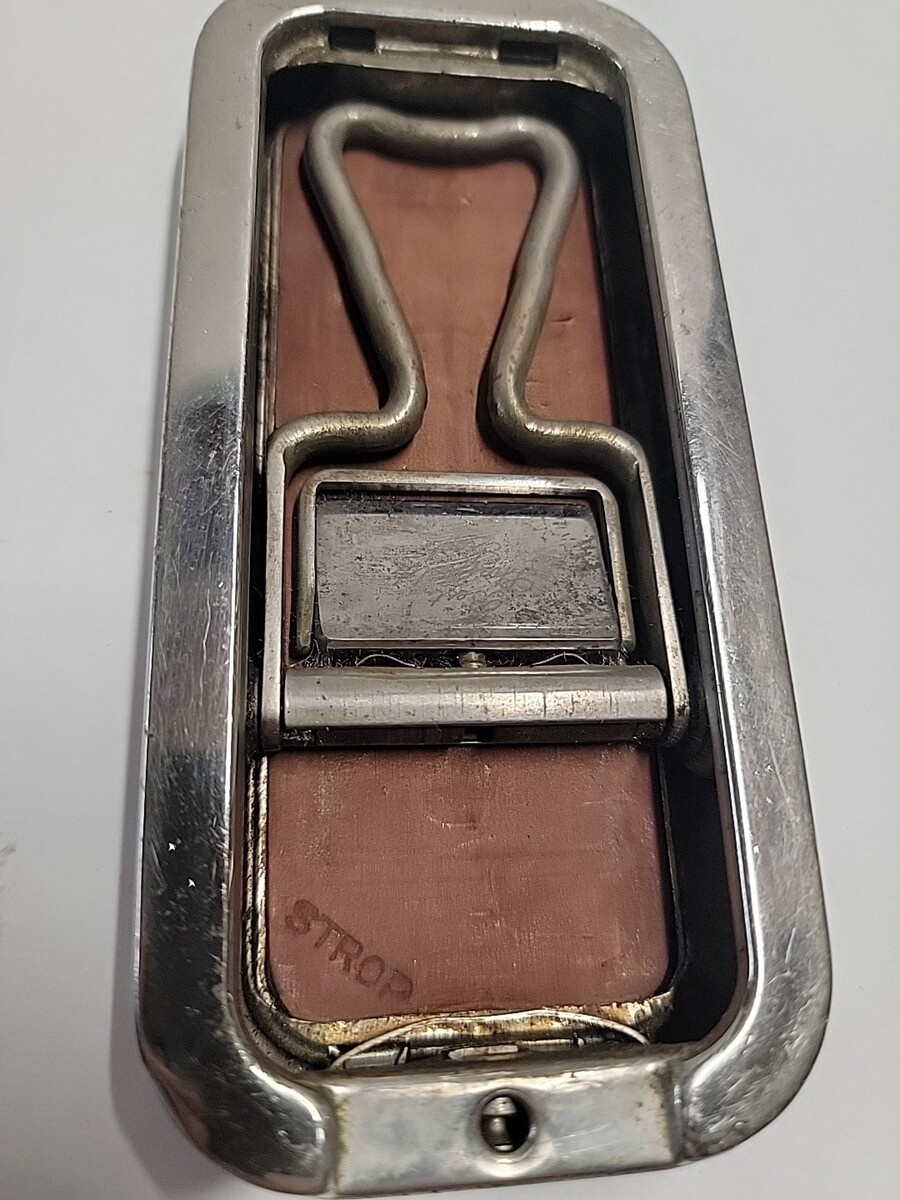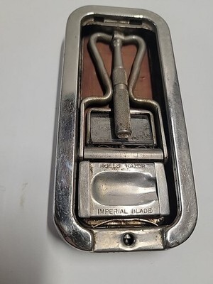 The Vintage Rolls Razor Set The Whetter, made in England, is a collectible shaving item that showcases the craftsmanship and quality of Rolls Razor. This safety razor set includes the iconic Whetter design, which is known for its precision and smoothness in shaving. Perfect for collectors or those who appreciate the nostalgia and elegance of traditional shaving tools, this set is a unique addition to any vanity or shaving collection.