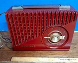 This is a Sentinel Radio Model 345 Series A Vintage 1950s - Red - Bakelite? Body looks in good condition as well as interior. No cracks that I can see. Nice deep red color. I plugged in and turned on but couldn't get any power. I don't know if I needed another battery that connects to the inside wires? Will pack well and ship fast! Sorry, no local pick up