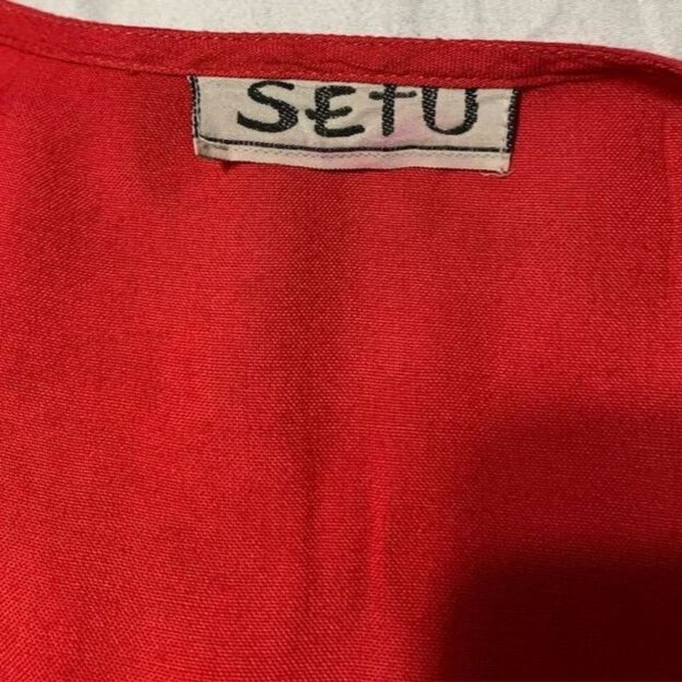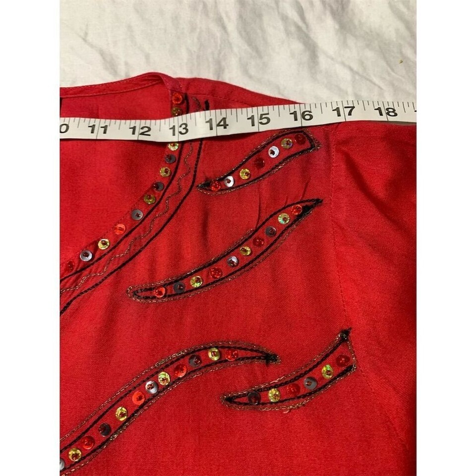 - Vintage Setu Red Sequin Beaded V-Neck Blouse Top Women's M Long Sleeve
