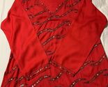 Vintage Setu Red Sequin Beaded V-Neck Blouse Top Women's M Long Sleeve