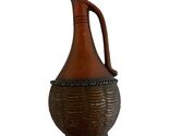 Vintage cast metal wall hanging jug by **Sexton USA**, featuring a tall narrow neck, curved handle, and textured ?woven basket? base. Finished in brown and copper tones with subtle shading for a realistic look. A built-in hanging loop on the back makes it ready to display. Perfect for vintage, rustic, or Mediterranean-style wall decor.