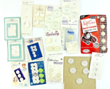 Vintage White Button Lot Lot of 70+ Buttons on original cards Brands include: Lucky day Bluebird Risdon Lansing Water Pearl Various sizes Some are mother of pearl and some are plastic. On one card Thelma offered some buttons to a friend to help make her clothing more comfortable. New old stock, cards have shelf wear. Ships promptly. Thank You! 202205 A49 2 8o