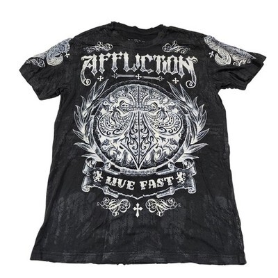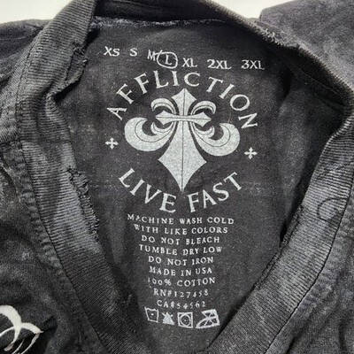 Keywords: Affliction T Shirt, Mens Graphic Tee, Live Fast Shirt, Edgy Style, Streetwear, Motorcycle Apparel, Rock Band Style, Cross Graphic, Distressed Print, Cotton Tee, L T Shirt, Designer Tee, Unique Design, Ed Hardy, Christian Audigier, True Vintage Y2K 00s, Emo, Goth, Grunge, Punk