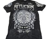 Vintage Y2K Affliction Men T Shirt Live Fast Graphic Black L Cross Distressed