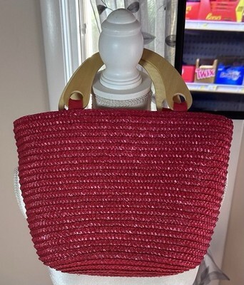 - Vintage Y2k Early 2000’s Faded Glory Red Straw Purse Hand Bag Wooden Handles