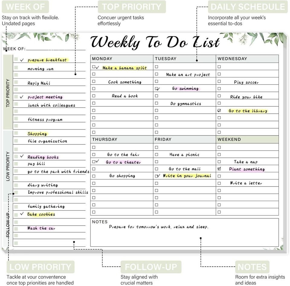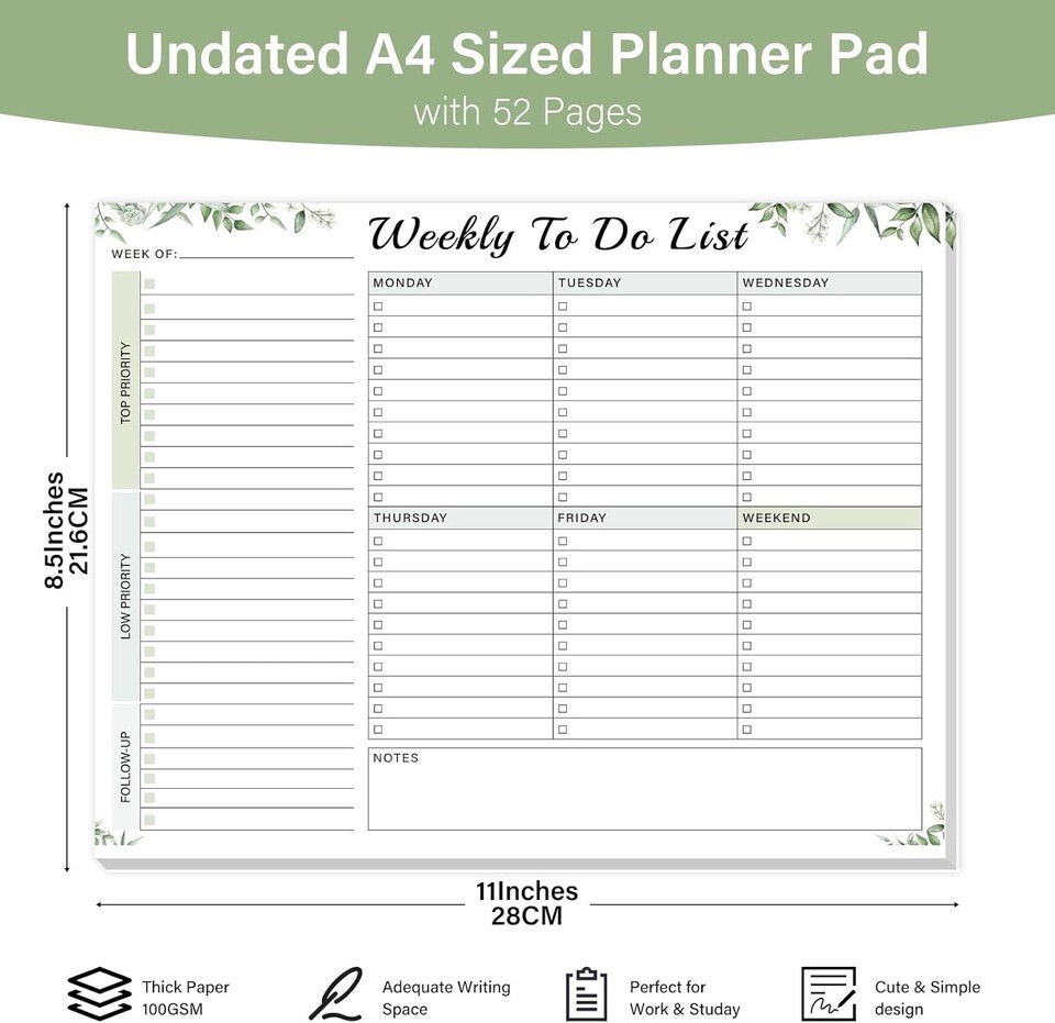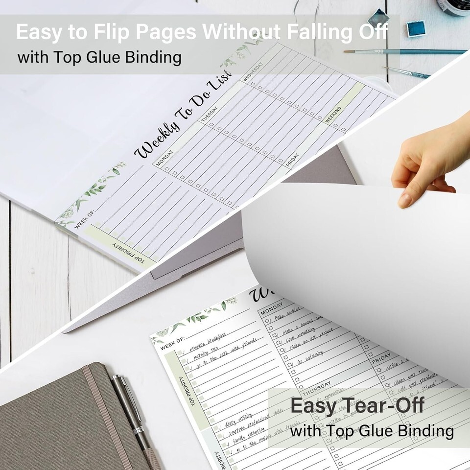 Flexible Undated Weekly Planner - Enjoy the flexibility of an Undated Weekly to do list Planner with 52 tear-off weeks of undated planning pages, providing a fresh start each week. Say goodbye to wasted spaces or skipped dates ? resume your planning journey exactly where you left off, anytime. This versatile Weekly planner notepad allows you to stay organized in 2023, 2024, or even as far ahead as 2025!