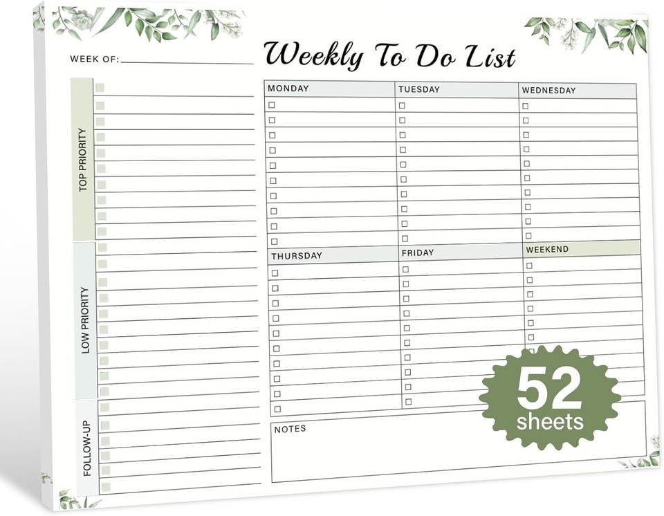 Versatile and Durable - Our Weekly to do list notepad suits various settings, including office, home, school, or personal organization. Built with high-quality paper, it ensures durability throughout the year, serving as a reliable companion for all your to do list planning needs.