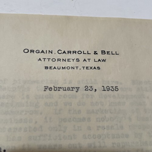 - Will E Orgain Signed 1935 Beaumont TX Southwestern University Trustee letter