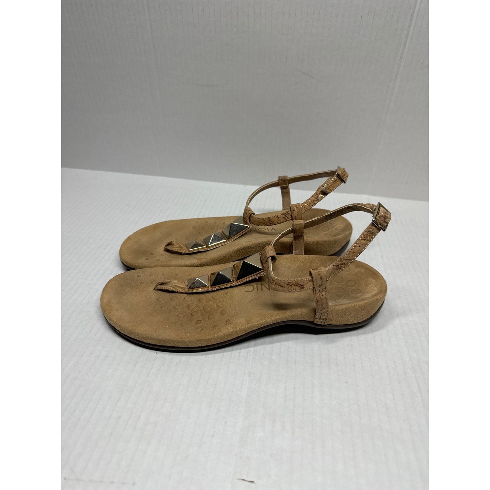- Women's Vionic Nala 340NALA Gold Cork Toe Post Sandal Ankle Strap Studs Size 7