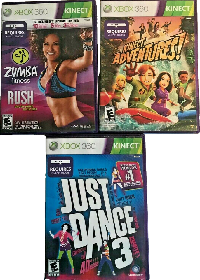 - XBOX 360: 3 Game Kinect Lot: Zumba, Kinect Adventures, Just Dance 3: Microsoft