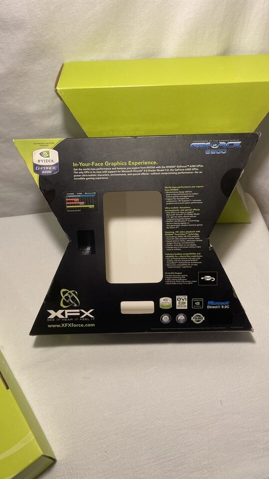 Upgrade your gaming experience with this XFX NVIDIA GeForce 6200A video card, boasting 256MB DDR2 memory and AGP 1.5V and AGP Universal compatible slots. With VGA and DVI connectors, this card offers DirectX 9.0c and DirectX 9.0 APIs for smooth gaming and video rendering. This graphics card is perfect for gamers who want to take their gaming to the next level.