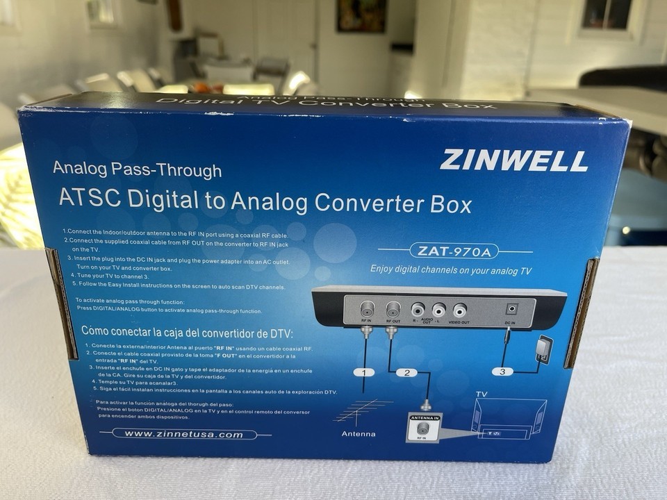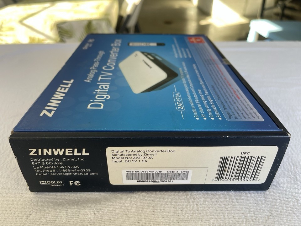 The Zinwell Analog Pass-Through Digital TV Converter Box ZAT-970A is a new device designed to convert analog TV signals into digital for enhanced quality and compatibility with modern TVs. This converter box, manufactured by Zinwell in Taiwan, allows users to continue accessing analog broadcasts while making their TVs compatible with digital signals. With a sleek white and black design, the Zinwell converter box is a practical and cost-effective solution for upgrading older TVs in a seamless and efficient manner.